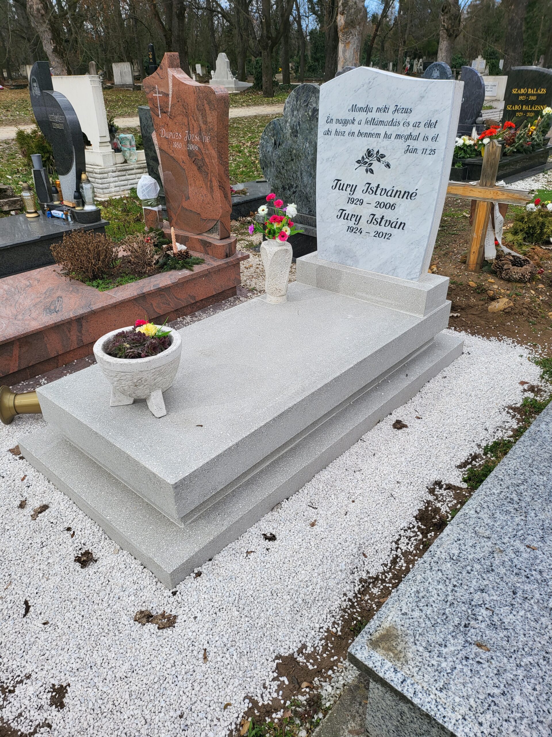 Minden sírkő egy emlék, minden felújítás egy újrateremtett méltóság. Az alábbi galériában eddigi munkáinkból válogattunk – új síremlékek, felújított sírkövek és temetéshez kapcsolódó kőmunkák szerepelnek. Büszkék vagyunk rá, hogy munkánkkal hozzájárulhatunk a szeretett hozzátartozók méltó emlékének megőrzéséhez.