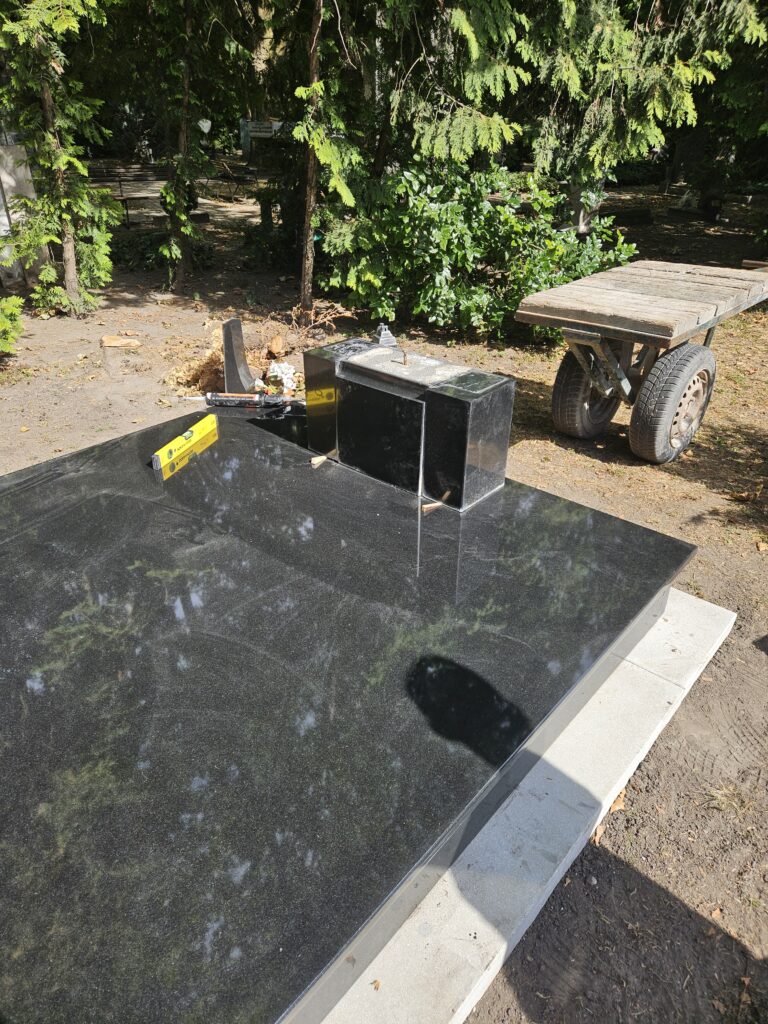 Amikor a sírkő elkészül és elfoglalja végső helyét, a kő többé nem pusztán munka eredménye, hanem egy történet megőrzése. A képeken már az elhelyezés pillanatai láthatók.